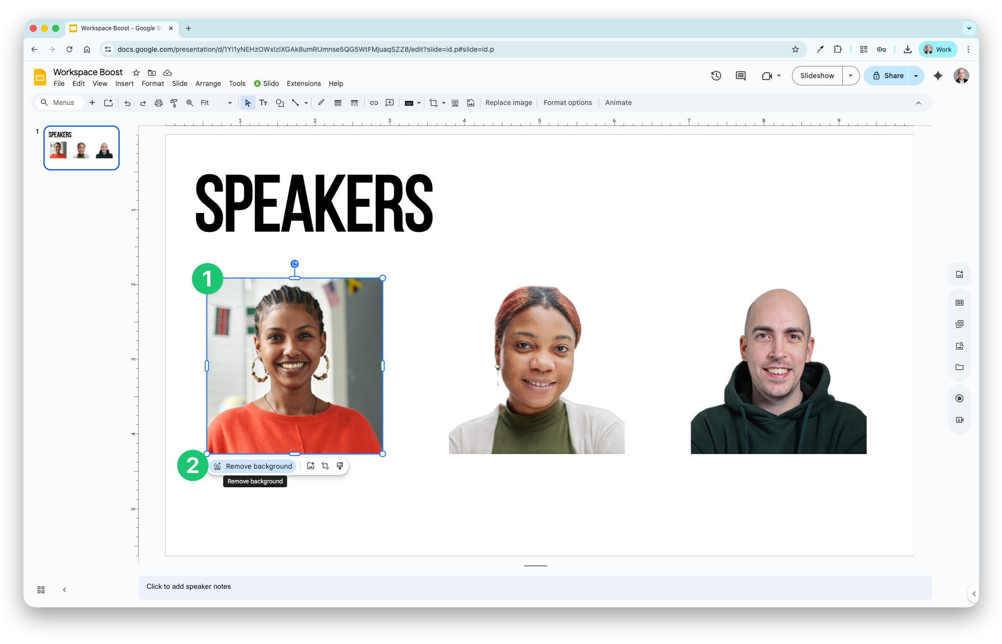 Talking of speaker headshots - it’s nice to keep them all uniform. In slides you can now easily remove backgrounds from images.